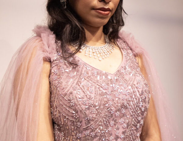 Mauve Embellished Net Ball Gown