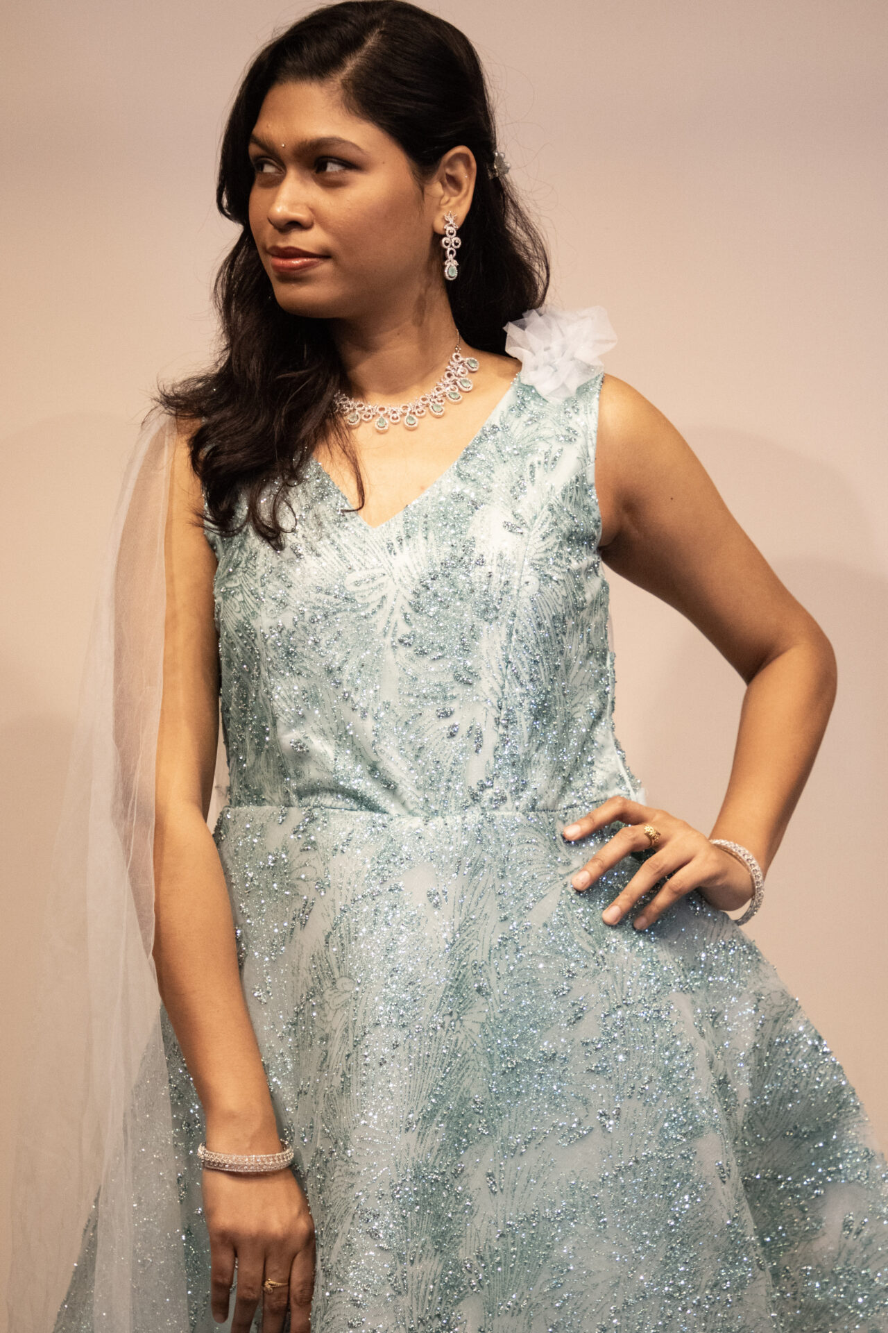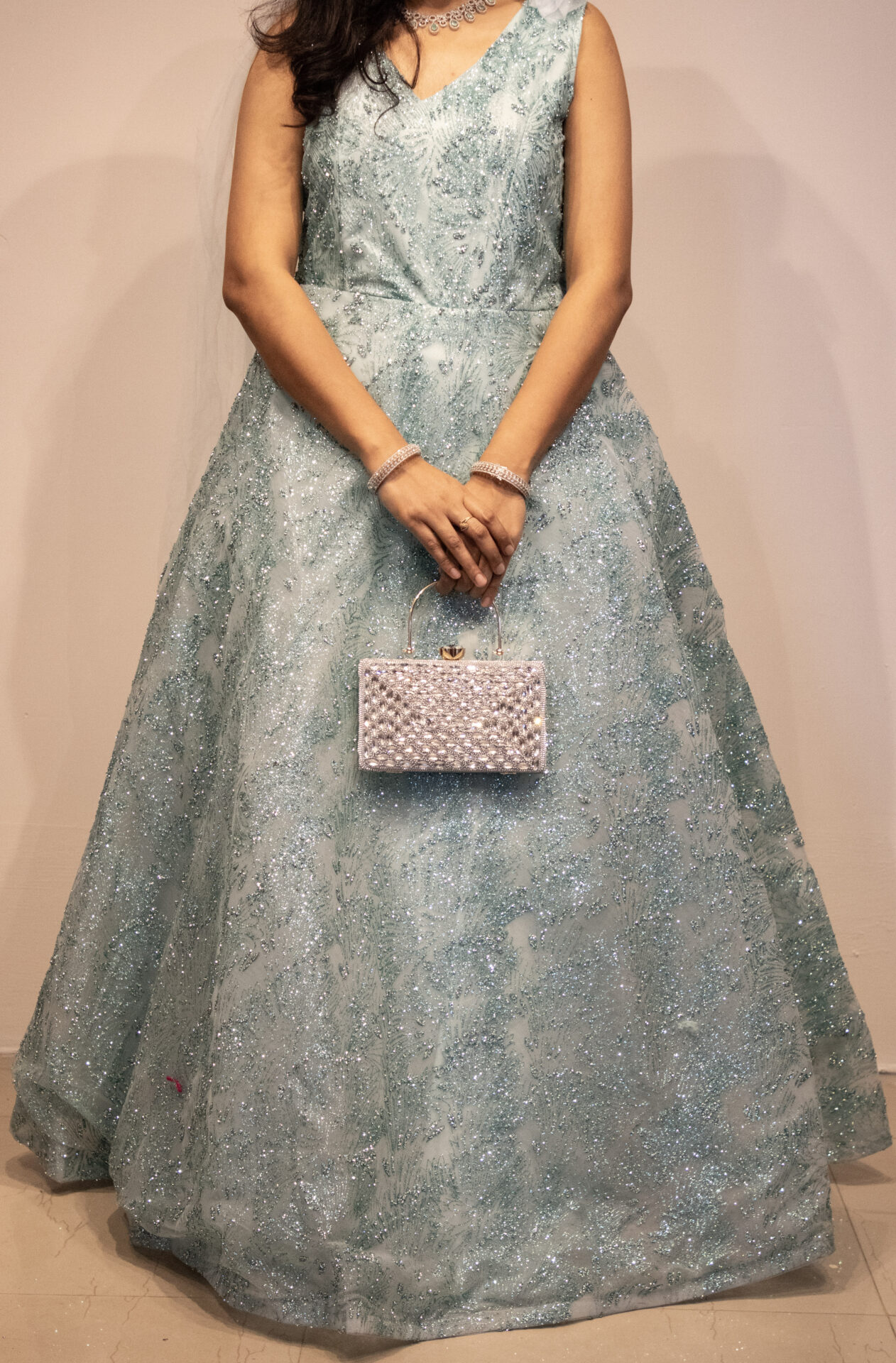 Ice Blue Shimmer Evening Gown